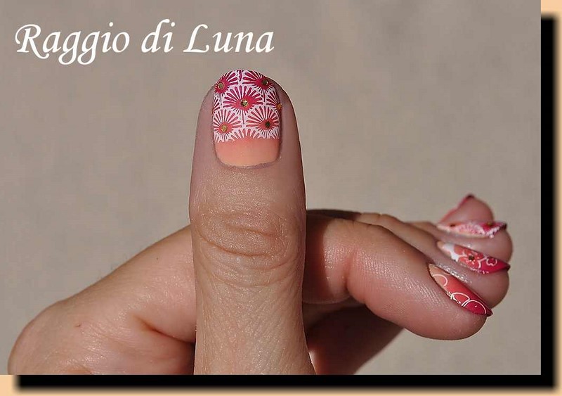 Here is my Floral manicure on coral & carmine red & cream gradient, I hope you like it! :-)
